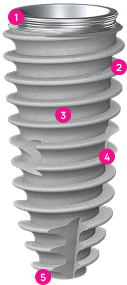 Агрессивный апекс упрощает установку имплантата, а также улучшает первичную стабильность как при одномоментной установке так и при немедленной нагрузке