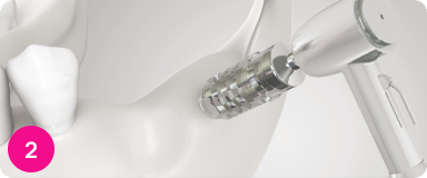 Определите место забора костного аутотранспланта и расположите фрезу там.