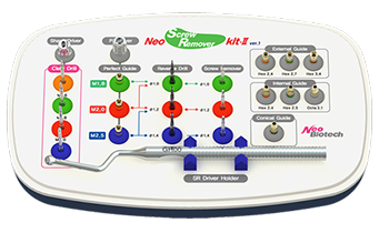 SR kit — набор для извлечения сломанных винтов из имплантов. SR-kit состоит из различных инструментов, предназначенных для быстрого и безопасного удаления винта из шахты имплантата в случае его поломки (1200 оборотов в минуту без орошения).