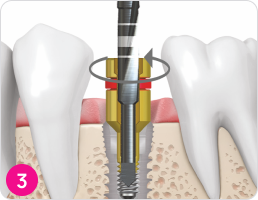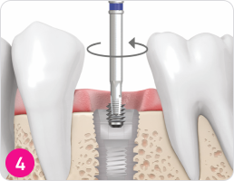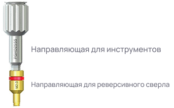 Выберите подходящий размер направляющей для сверла с обратным вращением. Используя направляющую для инструментов, затяните направляющую для сверла к импланту по часовой стрелке до соприкосновения с винтом внутри импланта.