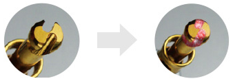 Протолкните и уплотните материал с помощью конденсора. Для большего контроля используйте стоппер.