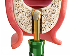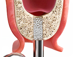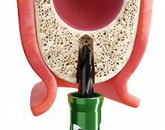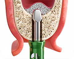 Высокая скорость сверления с постоянным орошением позволяет быстро и безопасно сформировать ложе имплантата, предупреждая повреждение слизистой оболочки.
